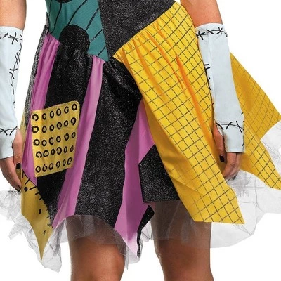 This fabulous Sally costume from the loved film, The Nightmare Before Christmas, will have Jack Skellington on the hunt for you in no time! This Sally costume will show off your sassy side with its multicolor patchwork, jagged hemline, petticoat, pair of glovettes, and signature Sally red wig.