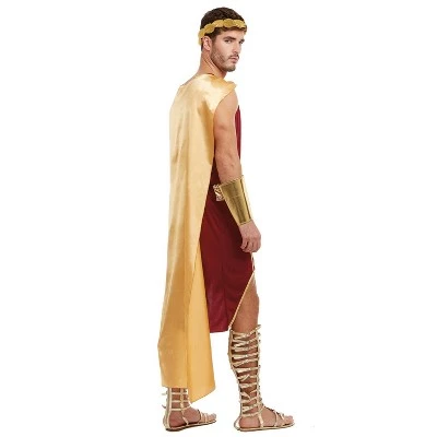 Who wouldn’t want to instantly become a Greek god? Now you can become the god of healing, music, and poetry with this Apollo Adult Costume for men. This Olympian god costume a red shirt and skirt in rich red and gold with jewel embellishments and Lyre print for a heroic look.