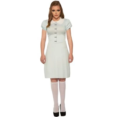 You’ll be looking like you just walked out of the movie, The Shining, this Halloween when you put on our Creepy Twin Adult Costume. With your purchase, you will receive everything you need to become a spooky and ominous girl whose only wish is to creep out everyone she sees. Featuring a ghostly dress that will have you looking haunting as ever, you’re going to love this look. Buy your costume today and go make this Halloween a real night of horror to remember!