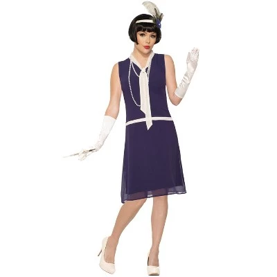Who doesn’t love the 1920s? It was full of glitz and glamour and it was a fashion revolution. Become a part of the roaring twenties with this Day Dreaming Daisy Costume for women. This flapper costume features a romantic navy dress with a dropped waist and attached white necktie.