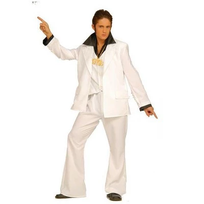 You’ll be hooked to the sounds of disco when you wear Adult 70s Disco Fever Costume. This costume comes with a white jacket, a vest, and bell bottom pants. This a goofy easy to wear costume that packs a bunch of style. The Adult 70s Disco Fever Costume is a funky outfit that will definitely get your next costume party! You’ll want to shake it with this costume! Burn Baby Burn you’ll start the disco inferno with this outrageous costume!
