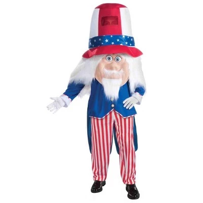 I want you in the Uncle Sam Parade Pleaser Oversized Mascot Costume. This costume is ideal for Fourth of July, Halloween, costume parties, parades and plays as well. Costume features an oversized hat headpiece, chest piece with face and hair, and pants. It’s a fun, patriotic costume that can be worn year after year.