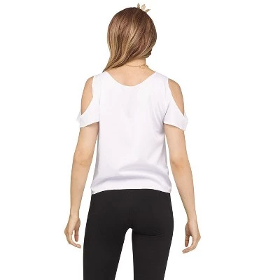 Grab three of your best friends to form the best group costumes ever! This Deck of Cards Costume Kit includes a white cold shoulder top with a red diamond and letter K graphic print in front and ties at the waist. Complete the look with the included necklace choker with clue, heart, spade, and diamond charms and the headband with attached golden crown. Have your friends dress up as the club, heart, and spade for the best group costume yet!
