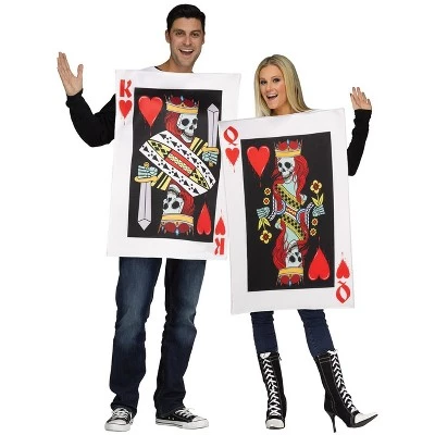 The king and queen of hearts are one of the oldest and most iconic couples! Join your other half in dressing up in this great couples costume! This card set has a dark twist and features the king in queen as skeletons on black backgrounds. It’s perfect for Halloween or for adding a goth twist to your Valentine’s Day or Casino Night event!