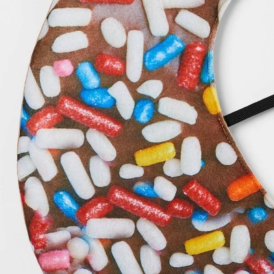 Bring a sweet look to your Halloween celebrations when you sport this Chocolate Donut Halloween Costume Mask from Hyde & EEK! Boutique™. This simple, one-size Halloween costume mask features a fabric construction and round donut shape in a design that easily slips over your head. The front is printed with chocolate frosting and rainbow sprinkle designs, while an elastic strap in the back easily secures the mask around your head.