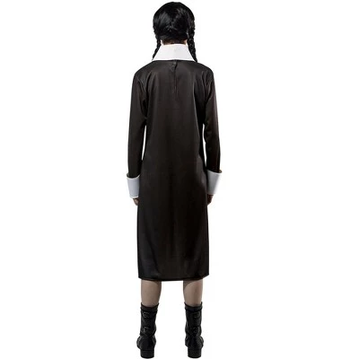 Enter the party wearing the Adult Addams Family Wednesday Costume and you’ll have the best sense of humor in the room. Everybody loves the dark and sarcastic wit of Wednesday, so be sure to play the part while wearing this classic Wednesday dress this Halloween. Perfect with a wig from our site, you’re going to have a blast donning this Addams Family attire. Buy your Wednesday costume today, and go make this Halloween your best one yet!