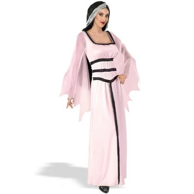 From the hit TV series The Munsters comes the lovely Lilly Munster. Includes a long pink velvet gown with sheer sleeves, black accents, and long black character wig with white streak. Get your friends to come as Herman, Eddie, and Grandpa Munster (all sold separately) for a wacky & fun group costume! Available in Adult Standard (fits up to a size 12). Shoes not included. This is an officially licensed costume from The Munstersâ„¢.