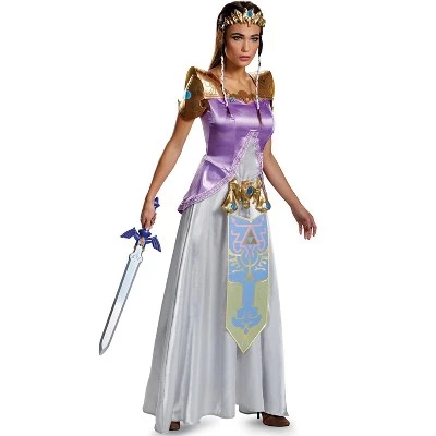 Transform into the Princess of Hyrule and dress up in this amazing Zelda costume. From your favorite videogame, The Legend of Zelda, you can bring your favorite character to life with this beautiful costume. Join Link on his quest when you partner with a friend for a Legend of Zelda couple costume. Together you can stop your enemies from taking hold of the Triforce and keep your land safe!