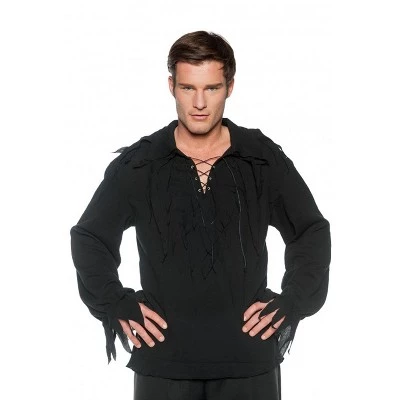 If you’re looking to put together a simple pirate costume, this is where to start. This black Tattered Pirate Shirt features a tattered design to the neck line, as well as a tattered design to the sleeve cuffs. Complete your look with an eyepatch, a gold hoop earring, and maybe a sword and you’ll be ready to plunder some booty!